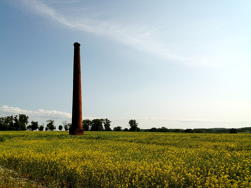 Rano pogoda ładna. Ostatni dzień dojazdu do Szlaku. Na samym początku przed wsią Monasterzysko Wielkie w polu samotny komin. Prawdopodobnie pozostałość po jakiejś cegielni.