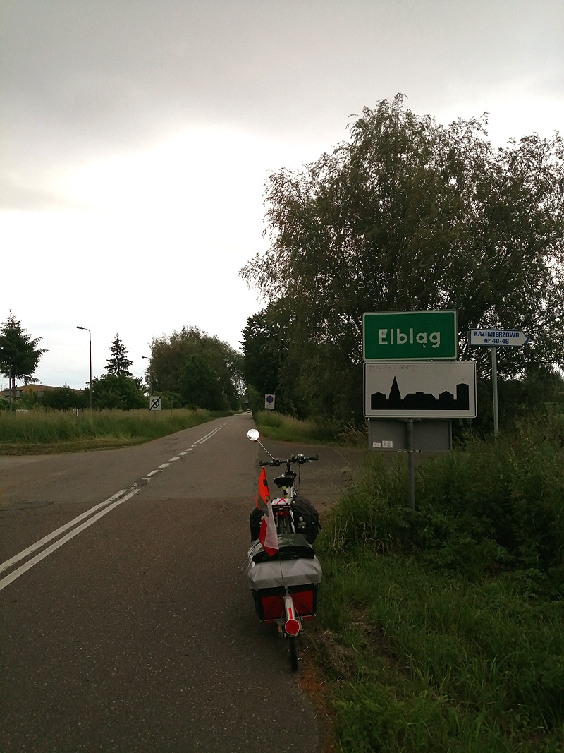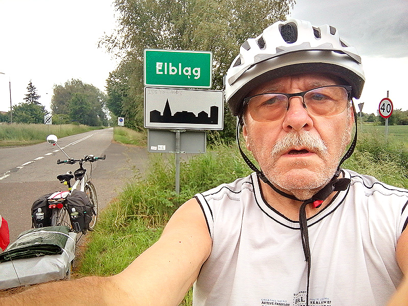 W Elblągu na 55.5 km tego dnia początek szlaku GreenVelo (dla mnie początek; na tablicy pisze „koniec”).